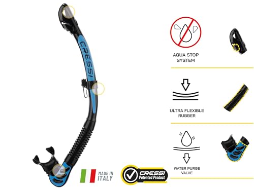 Der Cressi Alpha Ultra Dry Snorkel ist ein hochwertiger anatomisch geformter Erwachsenenschnorchel mit Ausblasventil, Faltenschlauch und Dry Komfort.