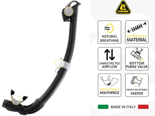 Das fortschrittliche Design des Cressi Seal Dry Snorkel macht ihn ideal für eine Vielzahl von Unterwasseraktivitäten, insbesondere für Apnoetauchen und Schnorcheln. Er wird in Italien von Cressi entwickelt und hergestellt, einer italienischen Marke, die seit 1946 Pionierarbeit im Bereich der Ausrüstung für Apnoetauchen, Unterwasserfischen und Tauchen leistet.