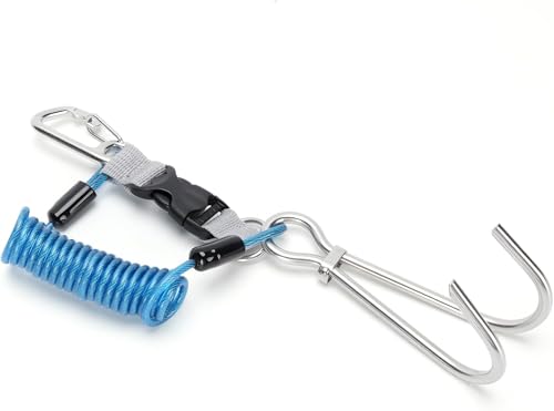 CYTGOUPER Riffhaken Tauchen Edelstahl Riffhaken mit Spiralkabel und Schnellverschluss, Tauchen Zubehör für Unterwasseraktivitäten, Sicherheitszubehör für Taucher, inkl. O-Ring, Blau