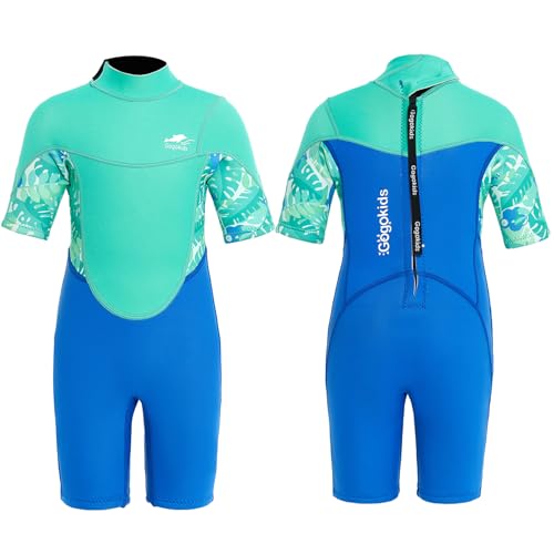 Gogokids Shorty Neoprenanzug Kinder, 2,5mm Neoprenanzüge Rückenreißverschluss Kleinkinder Kurze Nassanzüge Komfort & Wärme, UV Neopren für Schwimmen, Schnorcheln und Surfen, Alter 5-6 Jung, Grün