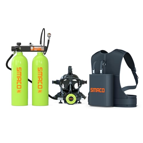 SMACO Mini-Tauchflasche 4L (zusammengebaut aus Zwei 2L Zylindern) für Flachwassertauchen Tragbares Tauchflaschen-Set Unterstützt 30–45 Minuten Atem für Tauchübungen/Angeln/Boot reinigen, Set-D, Grün
