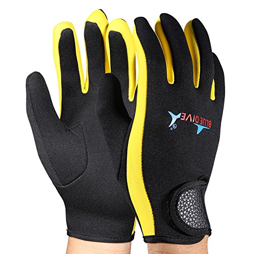 VGEBY Neoprenhandschuhe Damen, 1 Paar Tauchen Handschuhe Neopren Schnorcheln Kajak Surfen Wassersport Handschuhe(Black Yellow S)