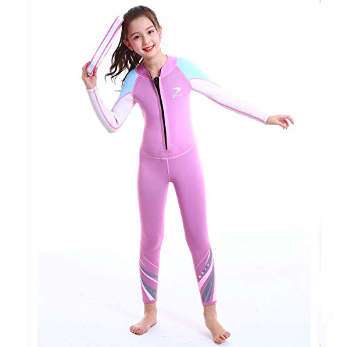 ZCCO Kids Neoprenanzug, 2,5 mm Neopren-Thermo-Badeanzug, Jugend-Badeanzug für Jungen und Mädchen Wärmeanzug mit Langen Ärmeln zum Tauchen, Schwimmen, Surfen … (Rosa, XS)